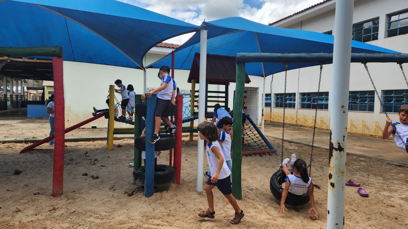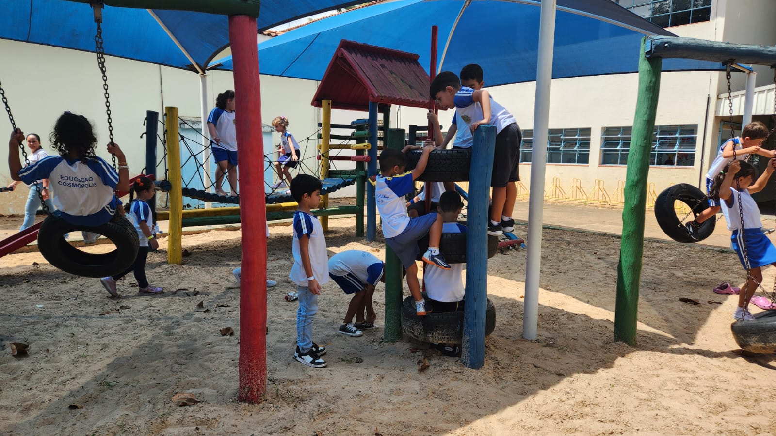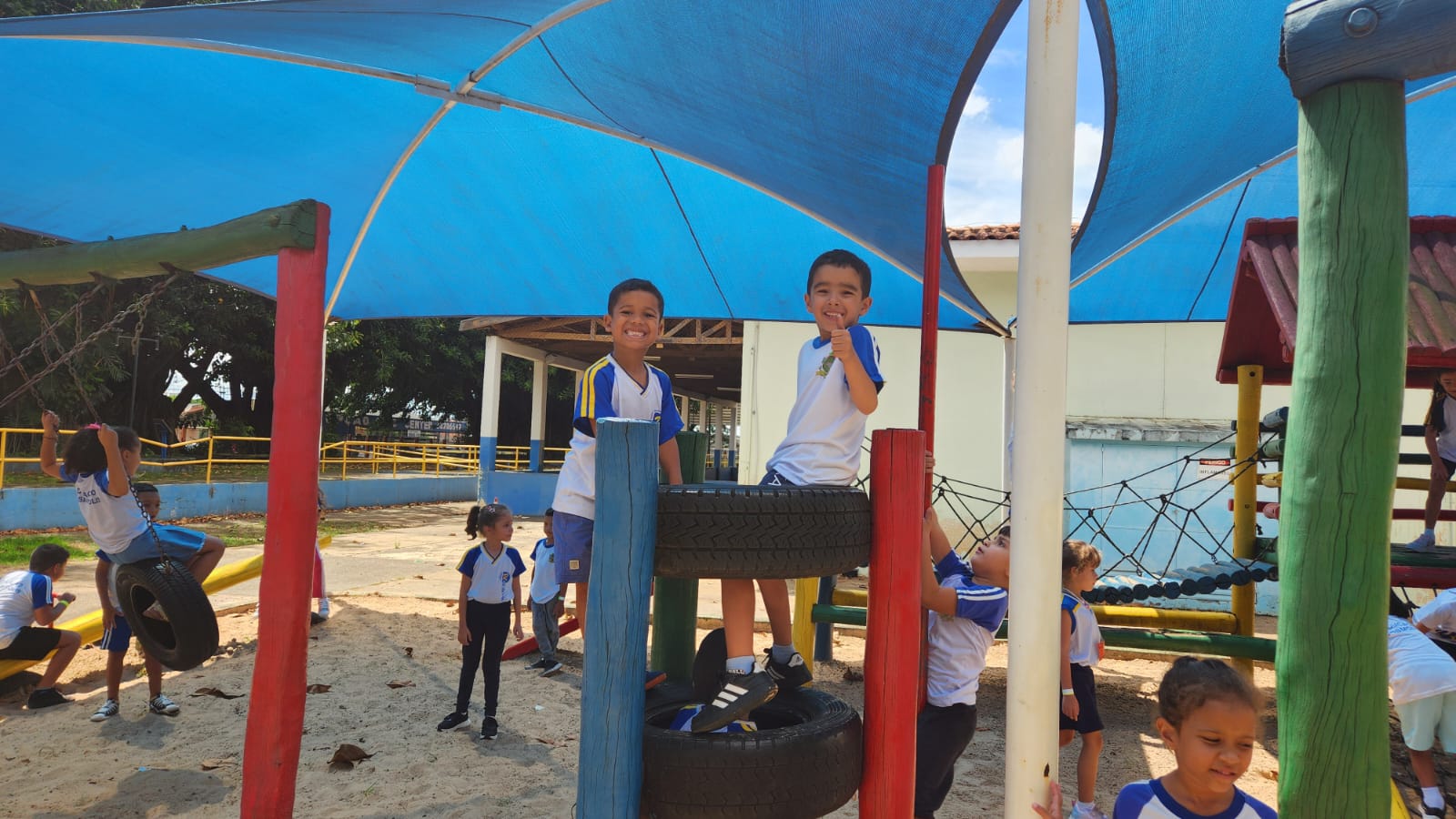 Os alunos do 1º ano B, da professora Vanesca, estavam ansiosos para aproveitar um momento especial no parque da escola. A expectativa tomou conta da turma, que aguardava com alegria essa vivência tão significativa dentro do ambiente escolar.