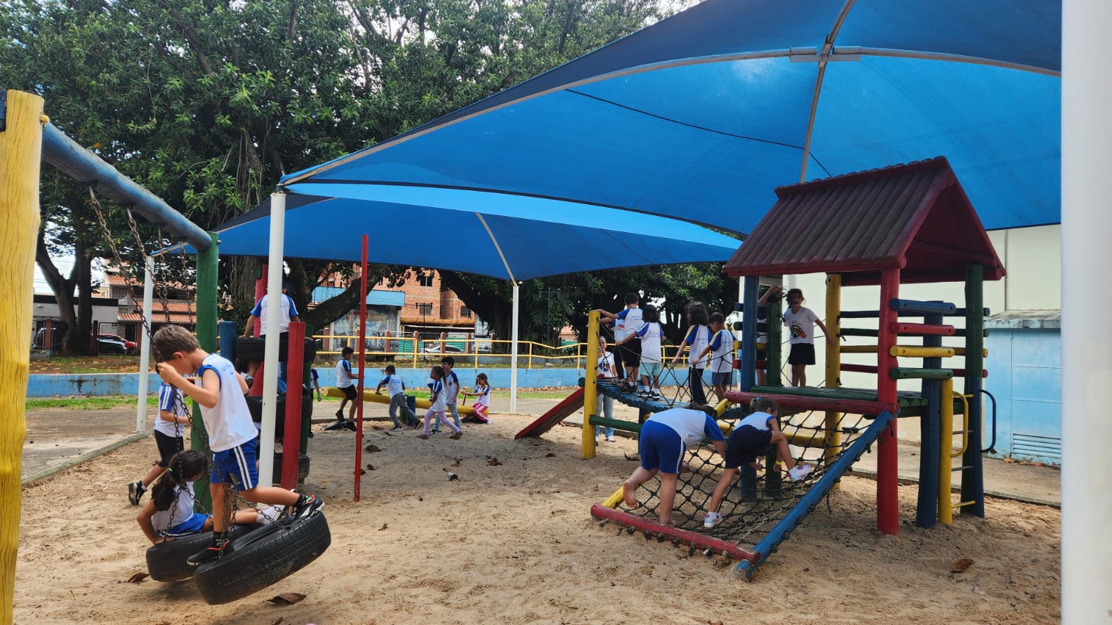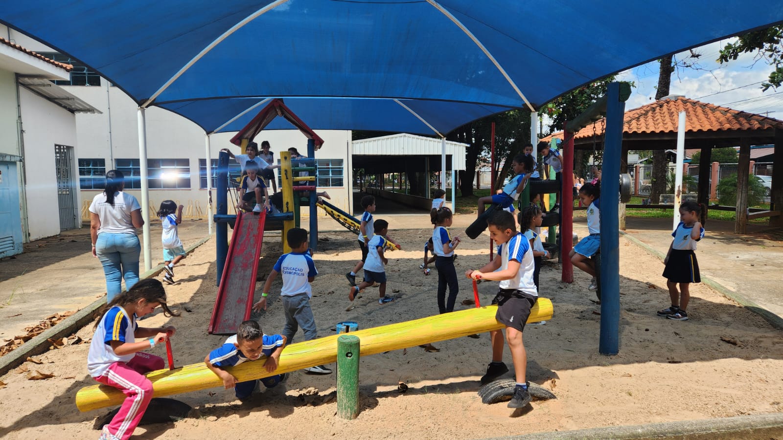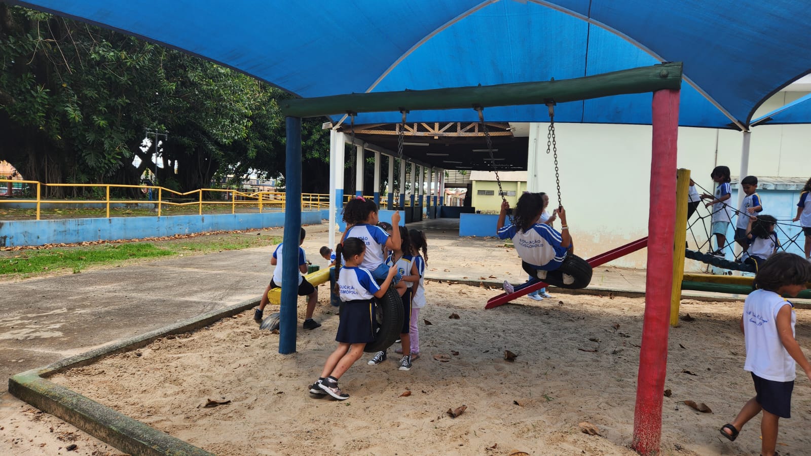 Os alunos do 1º ano B, da professora Vanesca, estavam ansiosos para aproveitar um momento especial no parque da escola. A expectativa tomou conta da turma, que aguardava com alegria essa vivência tão significativa dentro do ambiente escolar.
