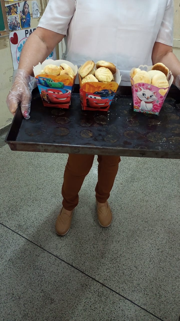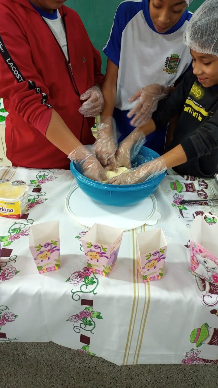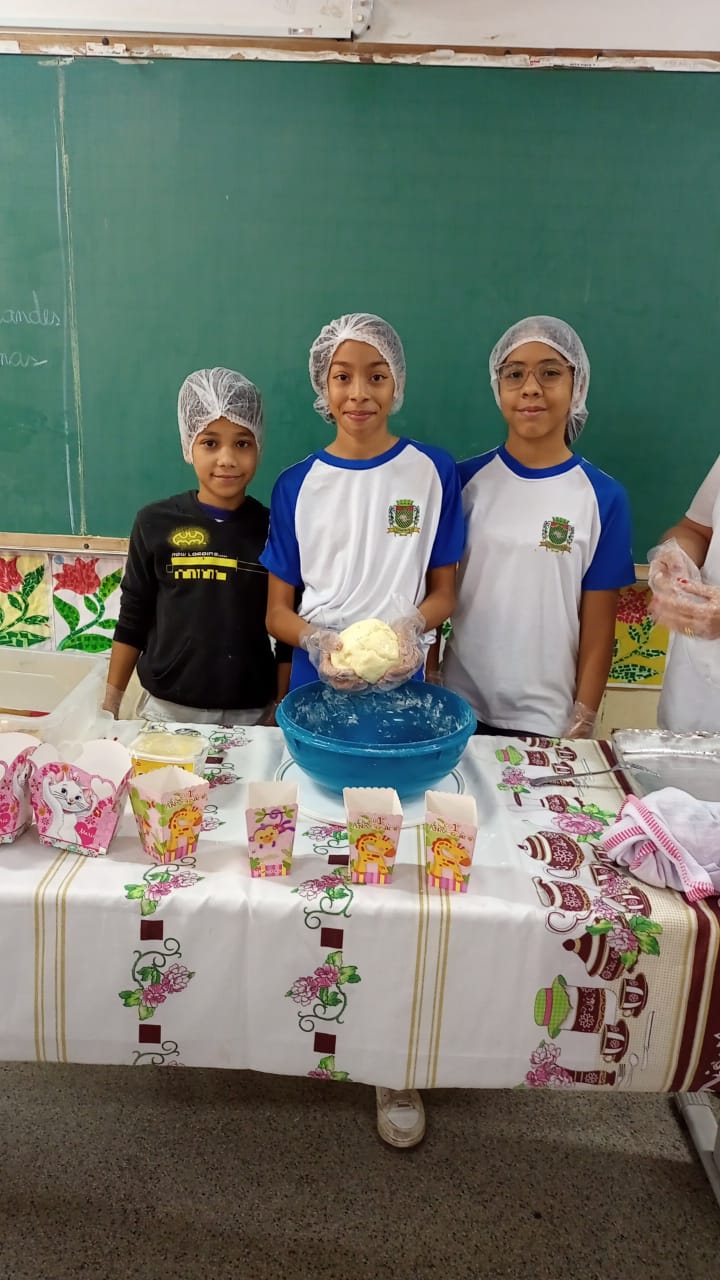 Através da produção de bolachas caseiras, os alunos aprendem sobre culinária, educação financeira, trabalho em equipe, organização e vendas.